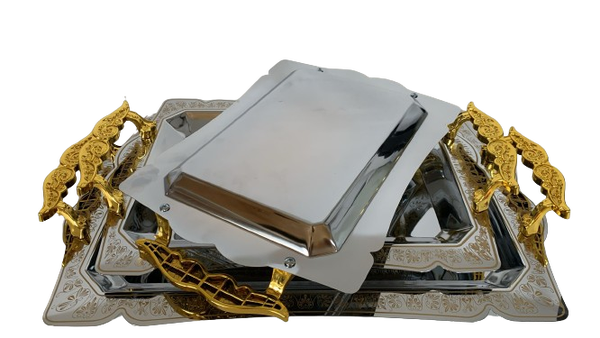 Restaurant en thuis Eten Serveerschaal Luxe Met Handvatten, Luxe Metalen Portie Gouden Arabisch Dienblad, Plateau De Service Turks Vintage Dienblad